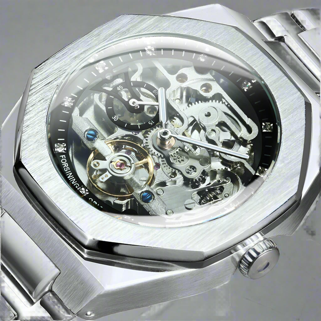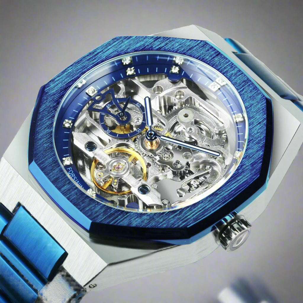 The Magnum M.2330 is a bold evolution in skeleton watch design. With a brushed stainless steel case, exposed mechanical movement, and luminous hands, this timepiece embodies strength and sophistication. Whether you choose silver, black, or the striking bo-silver with blue accents, the Magnum delivers a perfect balance of engineering mastery and modern style.